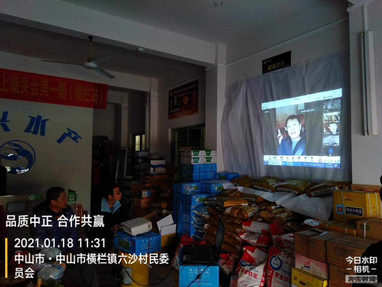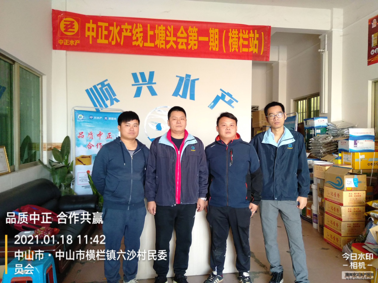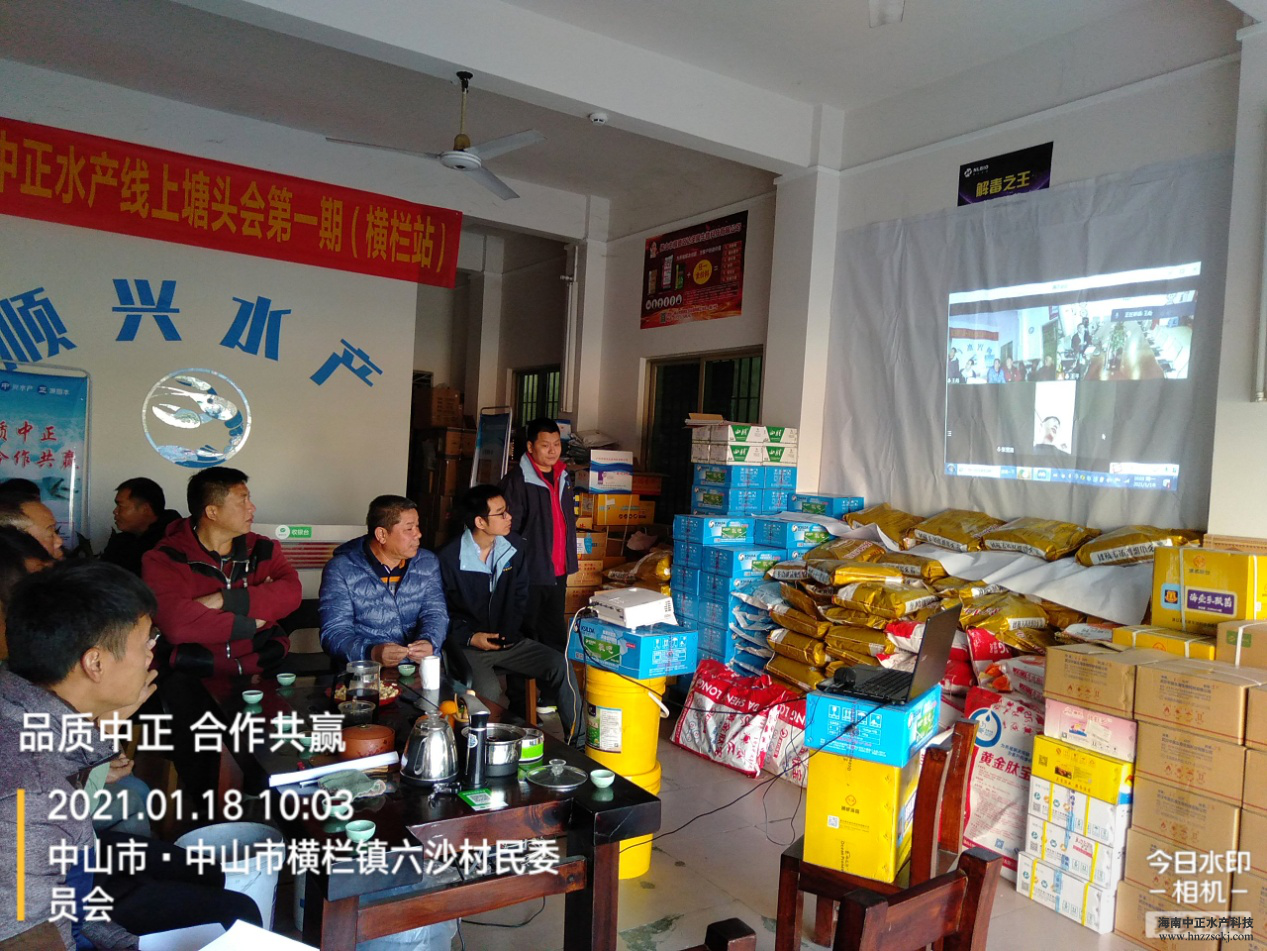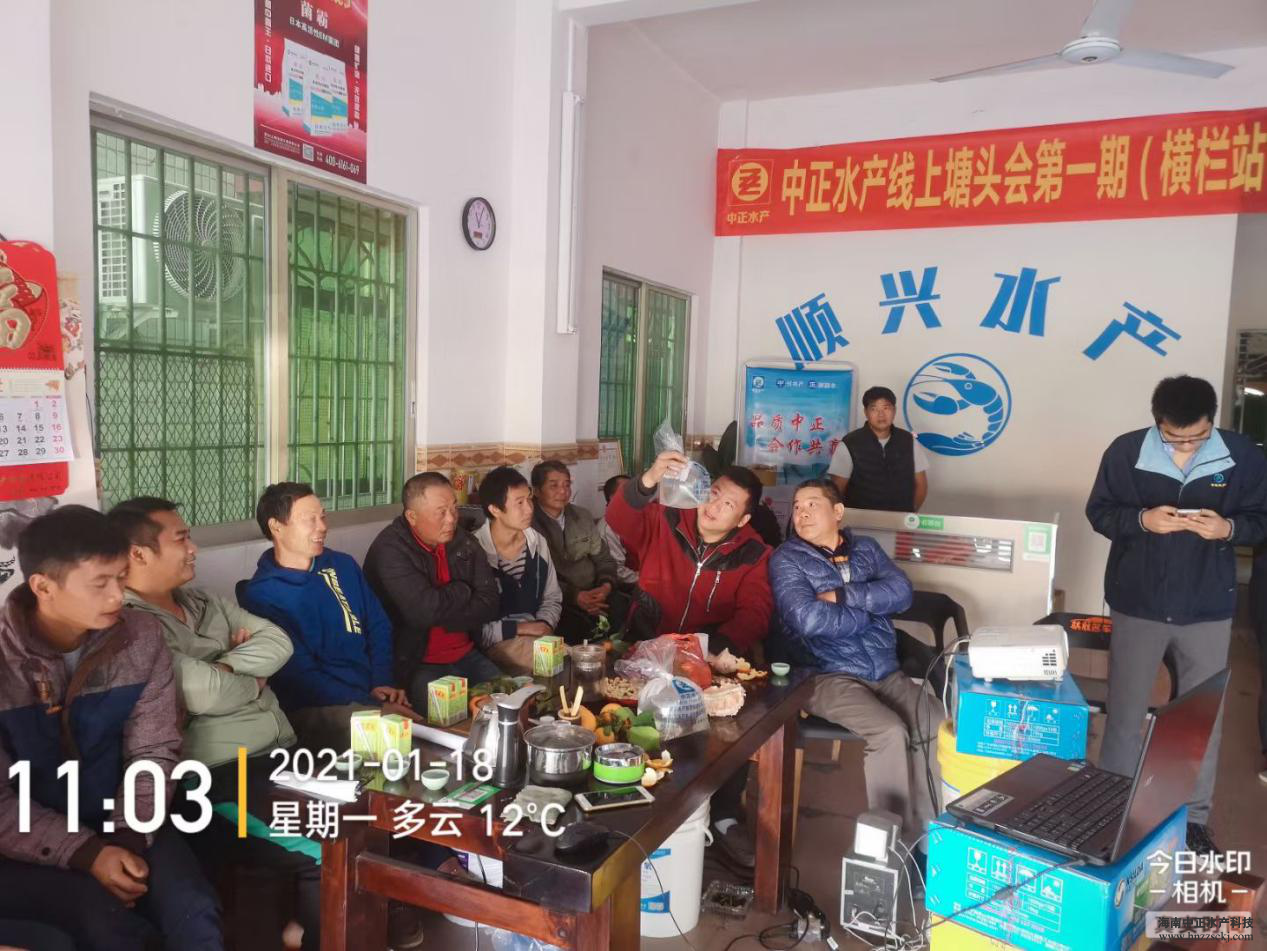 2021年01月18日中正水產第一期線上塘頭會在中山橫欄鎮順興水產技術服務站順利召開。這是中正首次嘗試將傳統的塘頭會搬上網絡,同時鏈接南北方養殖戶互相交流心得,傳授養殖經驗。
